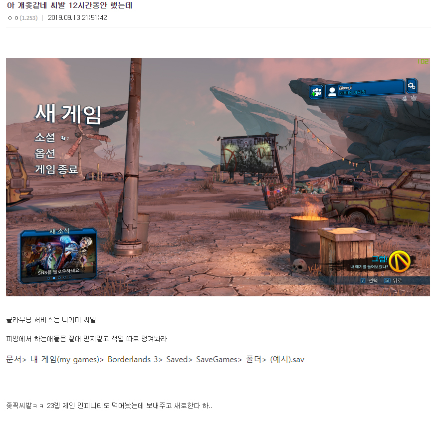 보더랜드3 드디어 1회차까지의 후기 (0) | 2019.09.16 |