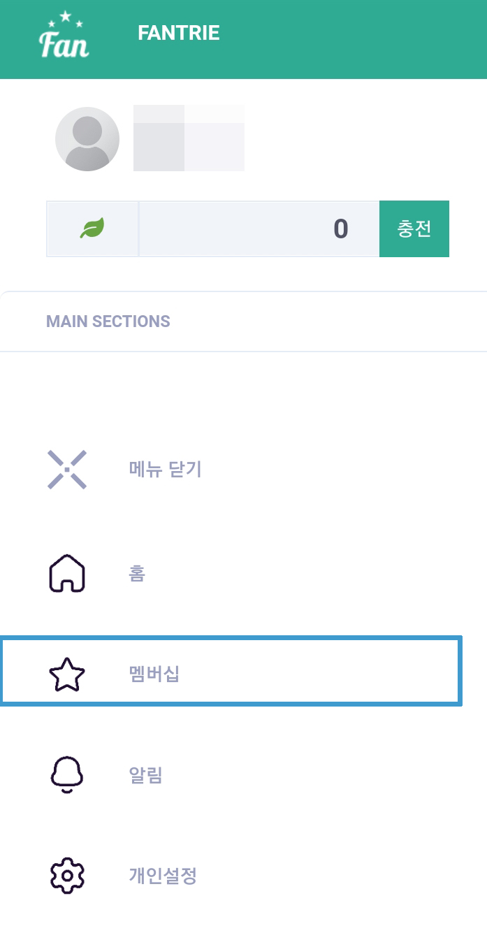 핸드폰화면 좌측상단에보면 팬트리 로고(Fan)을 클릭하면 메뉴가 나온다.