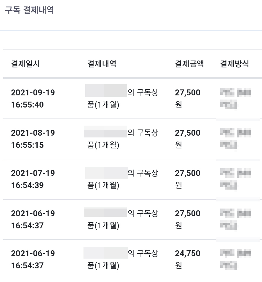 나같은경우엔 무슨 생각이었는지 6월에 첫 결제를 하였다. 그런데 이게 계속해서 연장이 되었던것. 6월에 몇장보고서 방치해두었는데 생돈만 날린것이다.