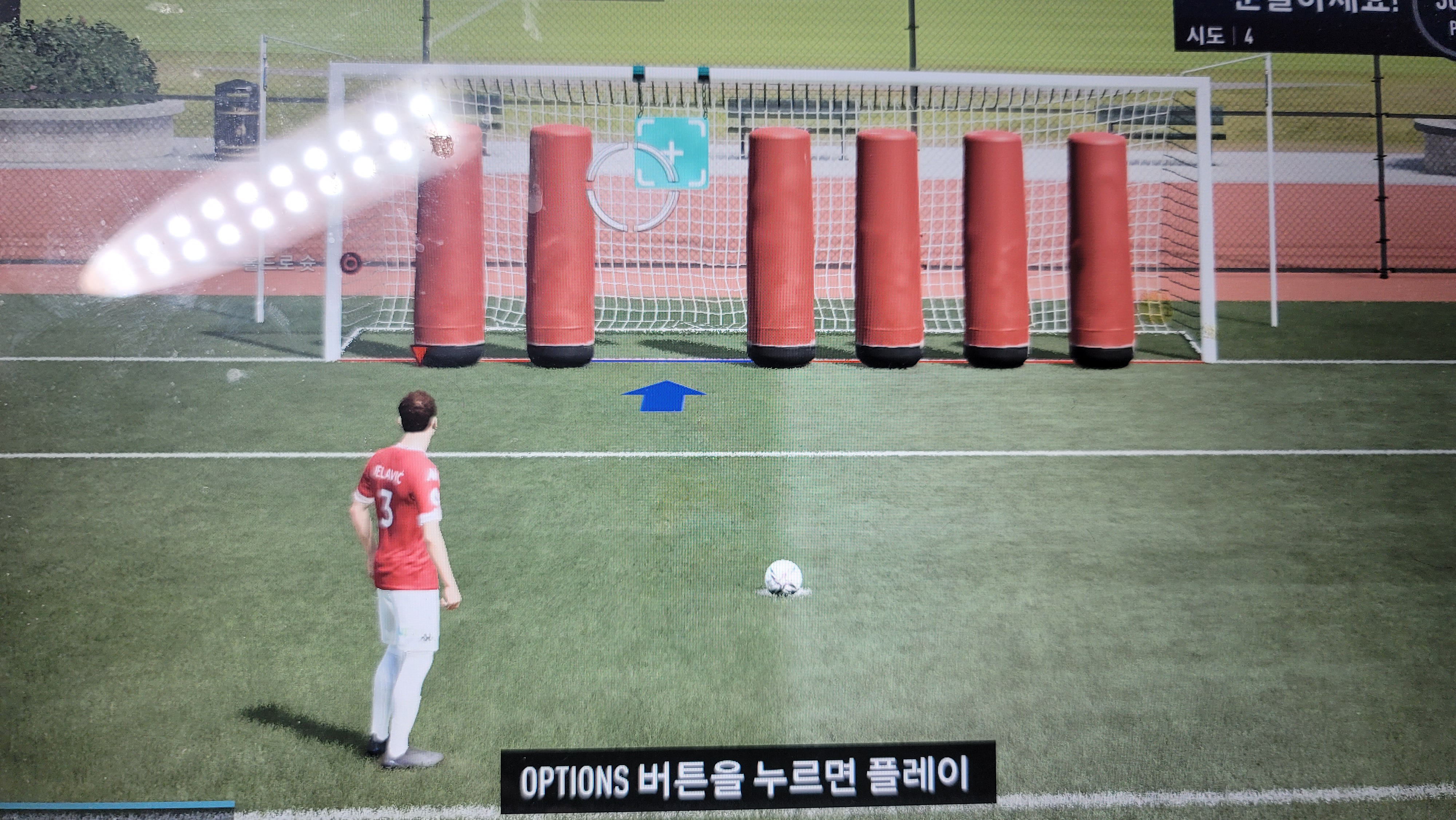 피파에서 위와 같이 세트피트 상황에서는 R스틱을 미세하게 조정하여 공의 목표를 정해야함.
